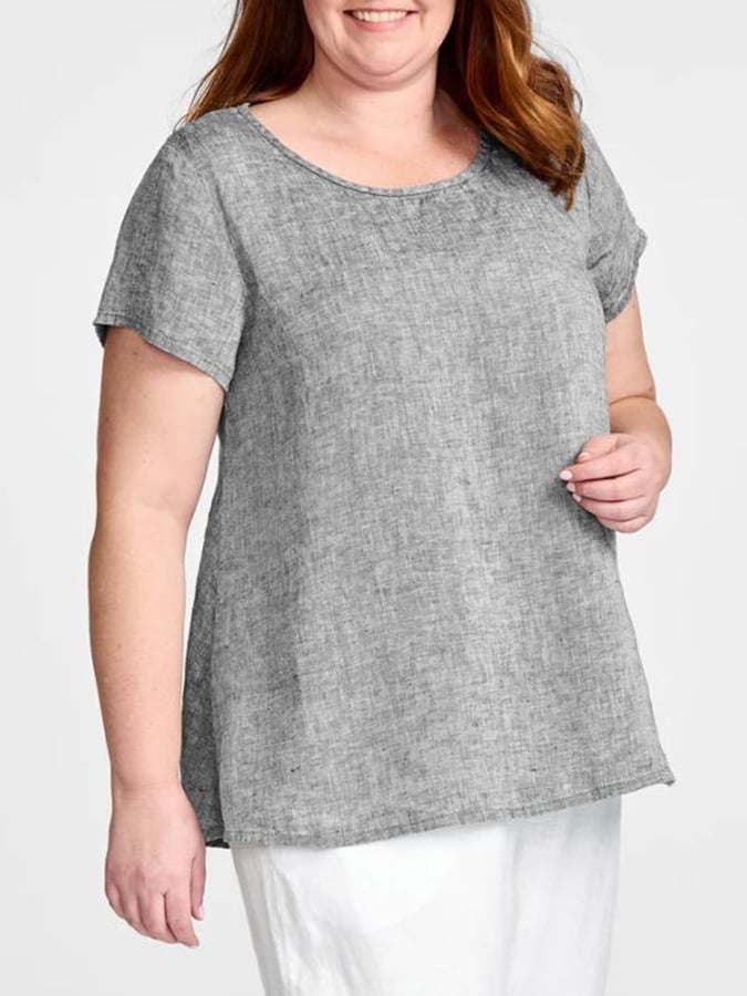 Plus Size Solid Color Round Neck Short Sleeve Cotton Top